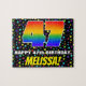 This joyful and fun birthday-themed jigsaw puzzle design features a large number “47” with a multicolored rainbow spectrum inspired gradient pattern, along with the message “HAPPY 47th BIRTHDAY,”, and a custom recipient name. The background features a cheerful, colorful star field pattern. A bold, personalized birthday puzzle like this might be a fun way to send birthday wishes to somebody who is celebrating their forty-seventh birthday. [~Z0000607]