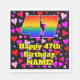 This fun and happy birthday paper napkin design features a large number “47” having a rainbow spectrum gradient inspired pattern. It also features the message “Happy 47th Birthday,”, and a custom name. The background features a pattern of pink, red, and purple heart shapes of various sizes. Fun, loving paper napkins like this might be fun to use at a birthday celebration being held to honor somebody’s 47th birthday. [~Z0000550]
