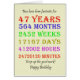 47th birthday card counting down the years, days, months, hours, and minutes. A card to give pause for thought! Leap years have been taken into account!