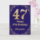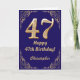 47th Birthday Navy Blue and Gold Glitter Frame. For further customization, please click the "Customize it" button and use our design tool to modify this template.