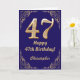 47th Birthday Navy Blue and Gold Glitter Frame Card