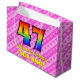47th Birthday: Pink Stripes & Hearts, Rainbow # 47 Large Gift Bag