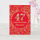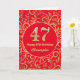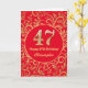 47th Birthday Red and Gold Floral Pattern Birthday Card. For further customization, please click the "Customize it" button and use our design tool to modify this template.