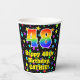 This fun and joyful birthday paper cup design features a large number “48” with a rainbow spectrum gradient inspired pattern, along with the message “Happy 48th Birthday,”, and a custom name. The background features a colorful pattern inspired by a field of stars. Colorful, vibrant paper cups like this might be fun to use at a birthday celebration being held to celebrate somebody’s forty eighth birthday. [~Z0000540]