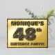 The front of this bold forty-eighth birthday celebration/party foil invitation card features a custom name, a large number “48th”, the message “BIRTHDAY PARTY!”, and a border, all featuring a rustic, yet elegant, faux wood grain look inspired pattern. The back features personalized details about the event, such as the date, time, venue/place, and any other relevant information. Editable invitations like these might be used to invite attendees to a birthday gathering being held to honor somebody’s 48th birthday. [~Z0000595]
