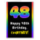 This exciting and upbeat birthday-themed greeting card design features a large number “48“ having a vibrant rainbow spectrum inspired gradient pattern, along with the message “Happy 48th Birthday,”, and a personalized recipient name. The inside features a customized birthday greeting message, or could perhaps be cleared and left blank if a message is to be written by hand instead. A cheerful, customizable birthday greeting card like this might be a fun way to send some birthday wishes to somebody who is celebrating their forty-eighth birthday. [~Z0000628]
