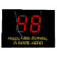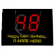 This silly and nerdy birthday themed gift bag design features a large number "48" with a red seven segment digital display style appearance, along with the message "Happy 48th Birthday," and an editable name in nerdy retro style yellow text, on a black colored background. A personalized gift bag like this might be used when wrapping gifts or presents being given to somebody who is celebrating their forty eighth birthday. [~Z0000389]