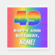 This exciting and vibrant birthday-themed paper napkin design features a large number “49” with a colorful rainbow spectrum inspired gradient pattern, along with the message “HAPPY 49th BIRTHDAY,”, and an editable recipient name. The background also features a joyful multicolored rainbow spectrum inspired gradient pattern. Birthday themed paper napkins like this might be used at a birthday party celebrating somebody’s 49th birthday. [~Z0000573]