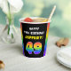 This joyful and cheerful birthday themed paper cup design features a large number “49“ having a vibrant multicolored rainbow spectrum inspired gradient pattern, along with the message “HAPPY 49th BIRTHDAY,”, and a personalized recipient name. Upbeat paper cups like this might be fun to use at a birthday party in honor of somebody’s forty ninth birthday. [~Z0000639]