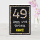 49th Birthday: Floral Flowers Number, Custom Name Card