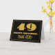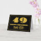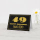 The front of this 1920s/1930s style inspired and vintage look birthday-themed greeting card design features a large art deco look inspired number "49", the message "HAPPY BIRTHDAY,", a custom name, and a border pattern consisting of lines. There is a black-colored background on the front. The inside features an editable birthday greeting message, or could perhaps be cleared and left blank if a message is to be written by hand instead. A personalized birthday card like this might be a fun way to acknowledge somebody’s forty ninth birthday. [~Z0000506]