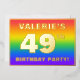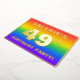 The front of this upbeat and fun forty-ninth birthday celebration/party foil invitation card design features a personalized name, a large number “49th”, the message “BIRTHDAY PARTY!”, and a border. The background of the front has a joyful, multicolored, rainbow spectrum inspired gradient pattern. The back features personalized details about the event, such as the date, time, location, and any other relevant information. Editable invitations like these might be a fun way to invite guests to a birthday gathering/party being held to honor somebody’s 49th birthday. [~Z0000599]