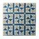 4.25" Blue White Pinwheel Patchwork Quilt Pattern Ceramic Tile