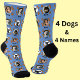 4 Dog Photos & 4 Names + Bones & Paw Prints Blue Socks