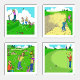 Golf Cartoons Gift Set. 4 Funny Golf Cartoons by UK cartoonist Nigel Sutherland. One is of a golfing tee-off, the second is a fortuitous drive down the fairway, the third is about being stuck in a sand trap bunker, and the fourth show a missed putt on the putting green.