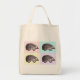 The printing came out very well, better than I had anticipated. The natural color fabric is sturdy with strong seams and comfortable handles. This tote fits easily over my shoulder. As it is filled, the bottom flattens out--very cool! I would buy this product again. This grocery tote holds a lot of groceries! The image quality was very good. The colors were a little darker than I had expected. The darkness may have been due to printing on a natural color fabric rather than on white. The cat design is attractively centered on the tote. The spirit of the design is very lively, just as it appears on the Zazzle website.
