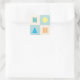 Four letter baby name sticker for a newborn baby and its parents in colorful pastel light blue green beige colors. The 4 letters are customizable adjusting to the kids name. The letters are chosen in a cute font so that it looks childishly figurative.
