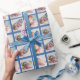 4 Photo Baby Boy Blue Cute Custom 1st Birthday Wrapping Paper