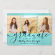 4 Photo Brushed Teal Blue Black Simple Graduation Announcement