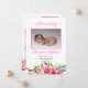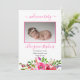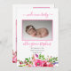 Boho baby girl bright pink watercolor floral bouquets four photo collage two-sided Birth Announcement. Simply add your precious baby's photos and details to complete this design. Composite design by Holiday Hearts Designs (rights reserved).