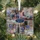 4 Photo Collage Family Name & Year Navy Blue White Glass Ornament