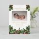 Sweet baby girl holly and berries Christmas holiday floral four photo collage two-sided Birth Announcement with gold foil text and accents on front. Simply add your precious baby's photos and details to complete this design. Composite design by Holiday Hearts Designs (rights reserved).