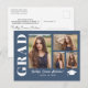 Proudly announce your high school or college graduation with these custom 4 photo collage postcards in dusty blue and white colors. Just drop in your personal photos and if needed, use the design tool to crop them for the perfect fit. You can even customize the background color to one of your choice. These stylish cards can easily become your personal grad party invitations by simply changing the text as needed. To see more items like this, visit my store here at "www.Zazzle.com/LakeViewCardCo". Thanks