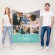 4 Photo Collage Monogram Name Teal Fleece Blanket
