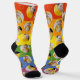 This fun Halloween socks are bright and colorful. The small print is crisp and shows the fun details. The softness of the socks feels nice on my feet and ankles. .