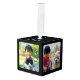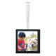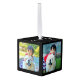 Add your favorite four family photos to each side of this 3-d cube ornament, as well as any single letter initial monogram in a fun sketchy typeface font and modern simple black background, with any words or names. Modern and unique gift idea and sentimental expression of your family activities and life. Share your custom pictures for a one-of-a-kind gift.