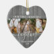 4 Photo First Xmas Together Gray Faux Wood Heart Ceramic Ornament