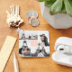 The key chain is made of metal and really sturdy. The flower design is really cheerful. The logo and colors are clear and crisp!