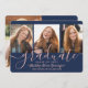 4 Photo Graduation Collage Navy Blue & Pink Script Announcement