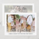 If unexpected circumstances have caused a postponement or cancellation of your special day, inform family and friends of the change in plans with these elegant "love is patient" wedding save the new date invitations. Pictures and all text are simple to customize. (IMAGE PLACEMENT TIP: An easy way to center a photo exactly how you want is to crop it before uploading to the Zazzle website.) Design features a white border, handwritten style script calligraphy, modern minimalist typography, and 4 pictures of your choice, one each on front and back. This engagement announcement note card is a chic and stylish way to inform wedding guests of your upcoming special day celebration and invite them to resave your new rescheduled date.