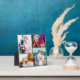 Personalized 4 photo template table plaque featuring 4 changeable photos, a rounded black frame and a built in stand at rear. A great unique gift for the family.