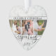 Celebrate the precious gift of your newest family member with a stylish four photo collage heart-shaped acrylic ornament. Gender neutral design with faux marble border is suitable for a new baby boy or girl. Wording and pictures on this template are simple to personalize. (IMAGE PLACEMENT TIP: An easy way to center a photo exactly how you want is to crop it before uploading to the Zazzle website.) Ideas for pictures could be an ultrasound, sonogram, new parents or mother to be maternity photos, or images of baby shoes or onesy. Name, year, due date, and "Our First Christmas Expecting" quote is easy to change in case it's needed for another occasion. Design features a white faux marble border, stylish handwritten script calligraphy, modern minimalist typewriter style typography, and four photos of your choice. This unique pregnancy announcement keepsake adds an elegant touch to the expecting parents' or grandparents' Xmas home decorations.