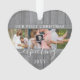 Celebrate the precious gift of your newest family member with a stylish four photo collage heart-shaped acrylic ornament. Gender neutral design with gray faux wood border is suitable for a new baby boy or girl. Wording and pictures on this template are simple to personalize. (IMAGE PLACEMENT TIP: An easy way to center a photo exactly how you want is to crop it before uploading to the Zazzle website.) Ideas for pictures could be an ultrasound, sonogram, new parents or mother to be maternity photos, or images of baby shoes or onesy. Name, year, due date, and "Our First Christmas Expecting" quote is easy to change in case it's needed for another occasion. The modern farmhouse style design features a rustic gray faux wood border, handwritten style script calligraphy, baby's name & birth date, and four pictures of your choice. This unique pregnancy announcement keepsake adds a stylish elegant touch to the expecting parents' or grandparents' Xmas home decorations.