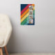 A retro rainbow with 70s inspired colors and a minimal pattern. The green, blue, yellow, orange and red colors can be changed. The large stripes running diagonal makes it a bold but minimal look for your friend.