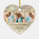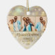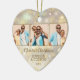 Your favorite 3 photos are featured on the front and one on the back of a heart shaped ceramic ornament with gold snowflakes, stars and dots on a holiday background of blurred lights and stars. Upload your own images to create Christmas tree ornaments for yourself or give as a gift to family, friends, parents and grandparents! MORE materials, shapes and DESIGNS in our store.