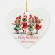 Cute dancing Christmas elves heart shaped ceramic ornament with 4 photos. Personalize with photos and family name.