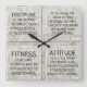 A motivational fitness wall clock with four powerful quotes for exercise motivation by Felicity Luckey of Great Minds Think Fit™.