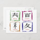 This very cool design features the Japanese symbols for all four seasons inside boxes drawn in the colors of the season. The brush strokes of the boxes looks great with the Asian words. Under each season are the words spring, summer, autumn, and winter.