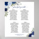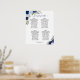 This beautiful watercolor floral 4 table wedding seating chart features a rustic boho chic design with dusty blue, navy, and indigo colored roses, along with sprigs of eucalyptus leaves, lavender flowers, and greenery. It has seating assignments for 40 people with 10 seats per table. The elegant script calligraphy title reads "please find your table", and there is space for the couple's names and wedding date at the bottom. Lovely and stylish, this seating chart is a great way to welcome your guests while helping them to find their seats.
