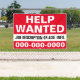 Are you hiring and want to get the word out? This large 4' x 6' single sided "Help Wanted" banner with job description line and phone number, is fully customizable! For indoor or outdoor use. All banners are hemmed and welded for a clean finished edge. For easy outdoor installation, on any surface, use the grommet option.