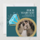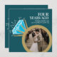 Invite your friends and family to a special fourth wedding anniversary party or dinner celebration with this blue topaz, and white sparkle, graphic eternity ring, two photos of then, and now invitation. Personalized with your own photos of your couple's wedding day and a current photo on the reverse, then add your own celebration words, party date, and venue. Other matching items and anniversary years are available. Original ring graphic art and design by www.mylittleeden.com on Zazzle.