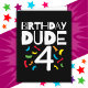 This Birthday Dude 4 design is perfect for a 4th birthday party celebration for boys turning four years old. Features colorful kids birthday party graphic w/ Birthday Dude 4 design that your little dude will LOVE!
