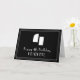 This retro Roaring Twenties style inspired birthday-themed greeting card design features a large art deco style inspired number "4", the message "Happy 4th Birthday,", a customizable name, and a border pattern consisting of thin lines on the front. The background of the front is colored black. The inside has a custom birthday greeting message, or could perhaps be cleared and left blank if a message is to be written by hand instead. An editable birthday greeting card like this might be sent in celebration of somebody’s fourth birthday. [~Z0000486]