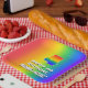 This vibrant and joyful birthday-themed paper plate design features a large number “4” having a colorful rainbow spectrum inspired gradient pattern. It also features the message “HAPPY 4th BIRTHDAY,”, and a customizable recipient name. The background also features a fun multicolored rainbow spectrum inspired gradient pattern. Exciting birthday themed paper plates like this might be used at a party celebrating somebody’s fourth birthday. [~Z0000583]