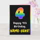 4th Birthday: Colorful Rainbow # 4, Custom Name Card