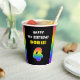 This fun and bold birthday-themed paper cup design features the number “4“ having a vibrant rainbow spectrum inspired gradient pattern, along with the message “HAPPY 4th BIRTHDAY,”, and an editable recipient name. Paper cups like this might be used at a birthday party for somebody who is celebrating their 4th birthday. [~Z0000639]